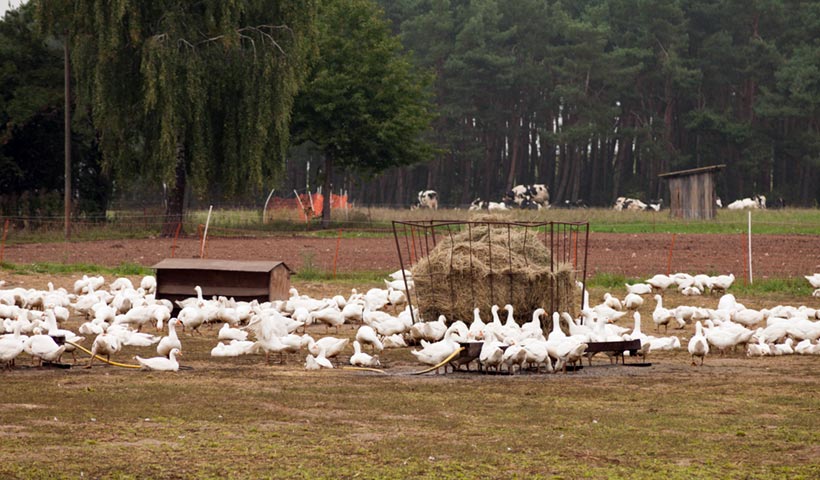 Eine Besonderheit und Alleinstellungsmerkmal der Bendeliner in der Prignitz ist die Aufzucht von Gänsen. Rund 5.000 Stück wackeln derzeit schnatternd über die Wiese. »Es sind die bekannten Dithmarscher Gänse. Dafür sind wir zertifiziert«, betont Geschäftsführer Karsten Krüger. Vier Monate dauert ein Durchgang. Dann sind die Gänse reif für die Schlachtung. Eine Schnellmast mache man nicht, weil dadurch die Qualität einfach nicht gegeben sei, so Krüger. Die Tiere werden im Freiland auf der Weide gehalten und bekommen täglich frisches Futter. Es ist in Planung, die Gänsezucht wieder weiter auszubauen. Bauliche Veränderungen über Winter bilden die Voraussetzungen dafür. Im Moment sei man dabei, alles zu optimieren. 2014 soll die Zahl der Gänse auf 7.500 wachsen. »Bendelin war schon immer ein Standort der Geflügelzucht«, meint Karsten Krüger, »wir hatten schon Broiler, Hähnchen und anderes Geflügel. In Spitzenzeiten waren es bis zu 10.000 Tiere.«