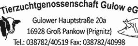 Tierzuchtgenossenschaft Gulow eG Gulower Hauptstraße 20aD-16928 Groß Pankow OT Gulow